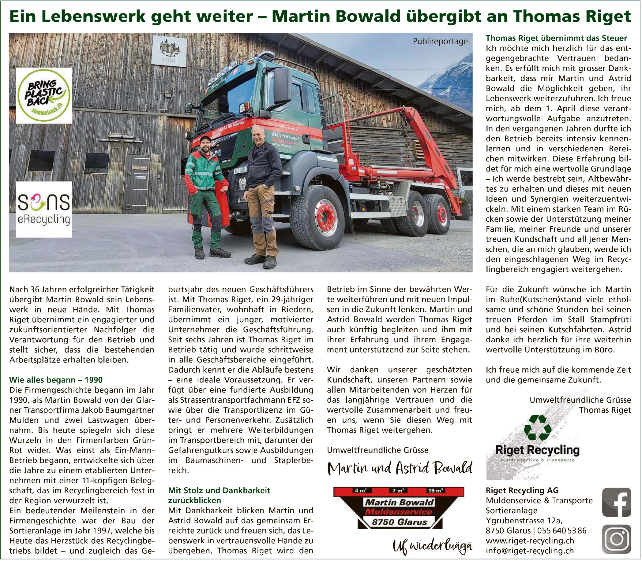 Achtung! Die Sortieranlage befindet sich an der Ygrubenstrasse 12a, Glarus