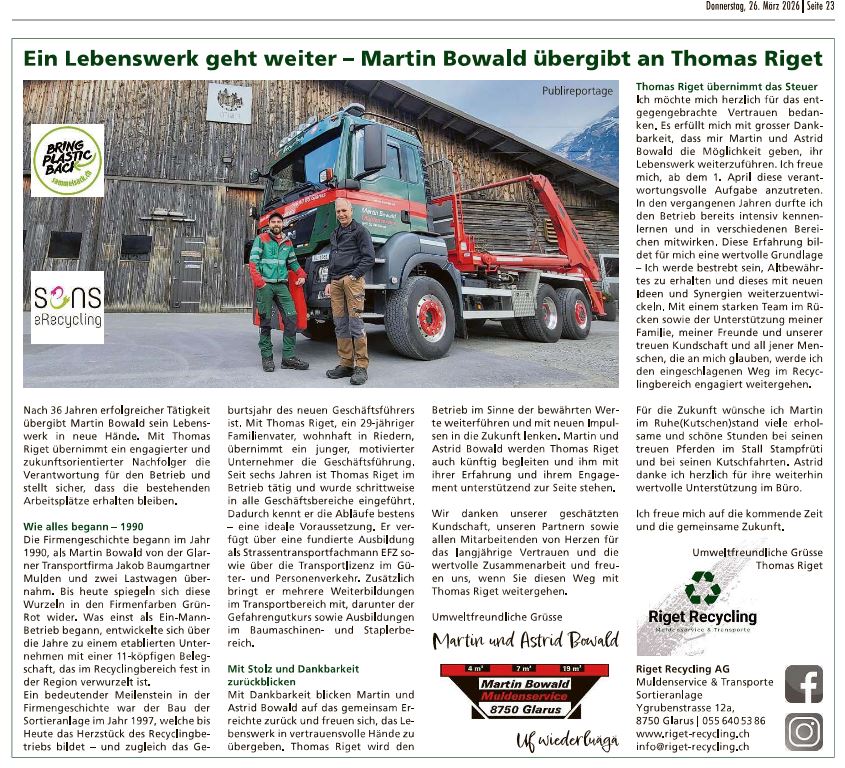 • Ihr Muldenservice im Glarnerland