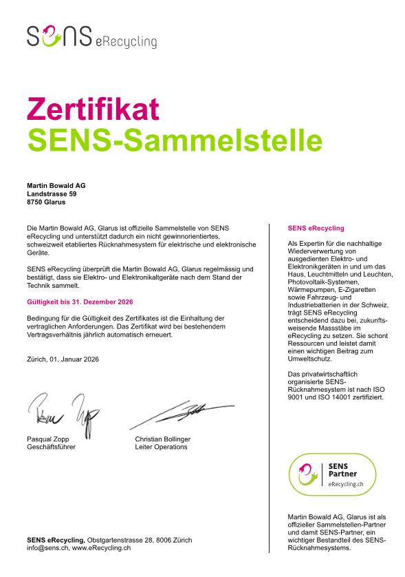 Die Martin Bowald AG in Glarus bietet die Möglichkeit, Haushalt-Kunststoffe in den kostenpflichtigen Sammelsäcken «Bring Plastic back» von sammelsack.ch zu sammeln. Dies verringert nicht nur den Hauskehricht, sondern reduziert auch den Ressourcenverbrauch und den CO2-Ausstoss. Dank der Martin Bowald AG und den teilnehmenden Gemeinden wurden im vergangenen Jahr 45’330 Kilogramm Kunststoffe gesammelt und dem Recycling zugeführt. Dies ist eine beachtliche Menge und zeigt, dass sich auch das Sammeln der vermeintlich kleinen Haushaltsanteile lohnt.